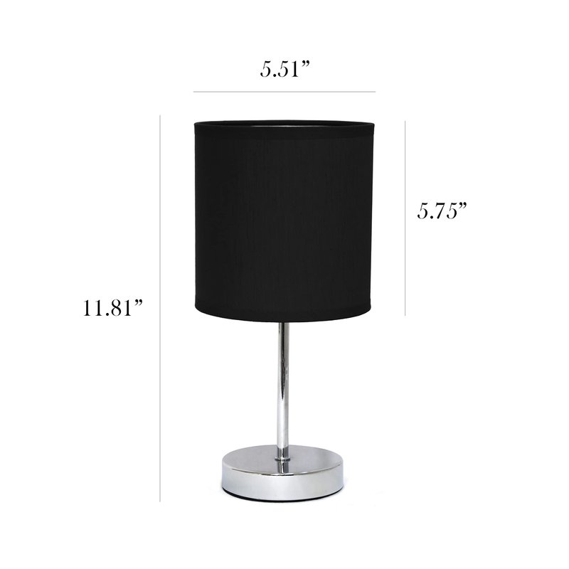 Simple Designs LT2007-BLK Chrome Mini Basic Table Lamp with Fabric Shade, Black