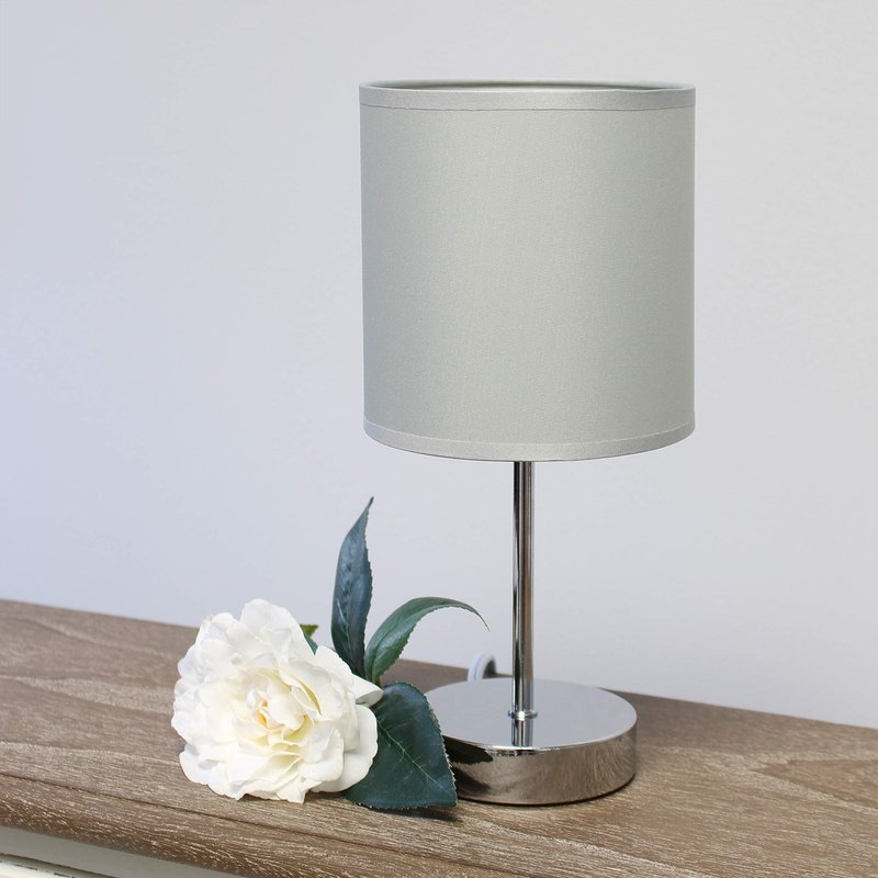 Simple Designs LT2007-SLT Chrome Mini Basic Table Lamp with Fabric Shade, Slate Gray