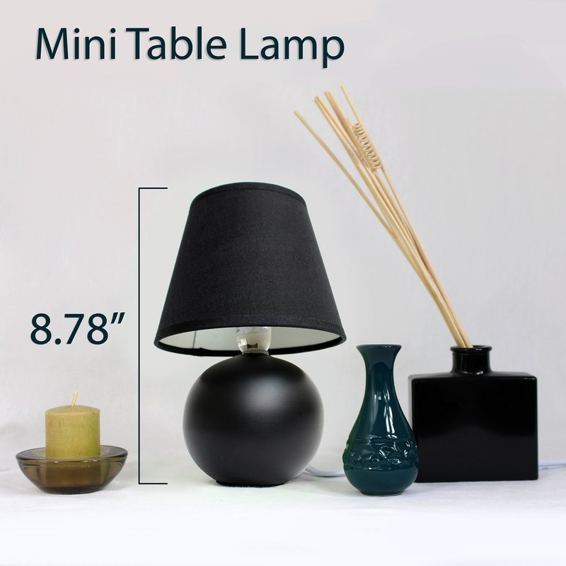 Simple Designs LT2008-BLK Mini Ceramic Globe Table Lamp with Matching Fabric Shade, Black