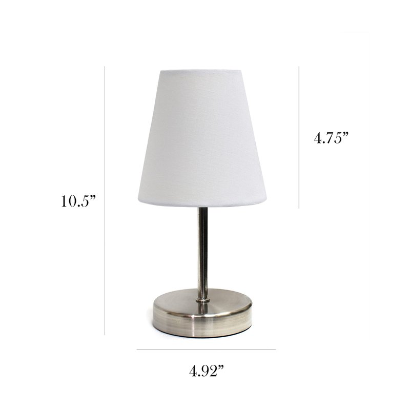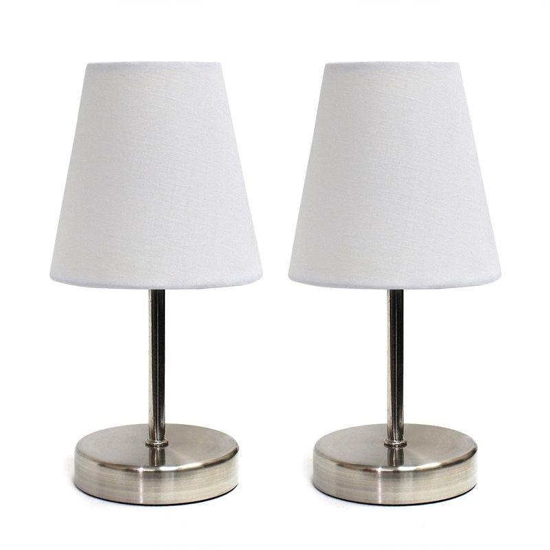 Simple Designs LT2013-WHT-2PK Sand Nickel Mini Basic Table Lamp with Fabric Shade 2 Pack Set