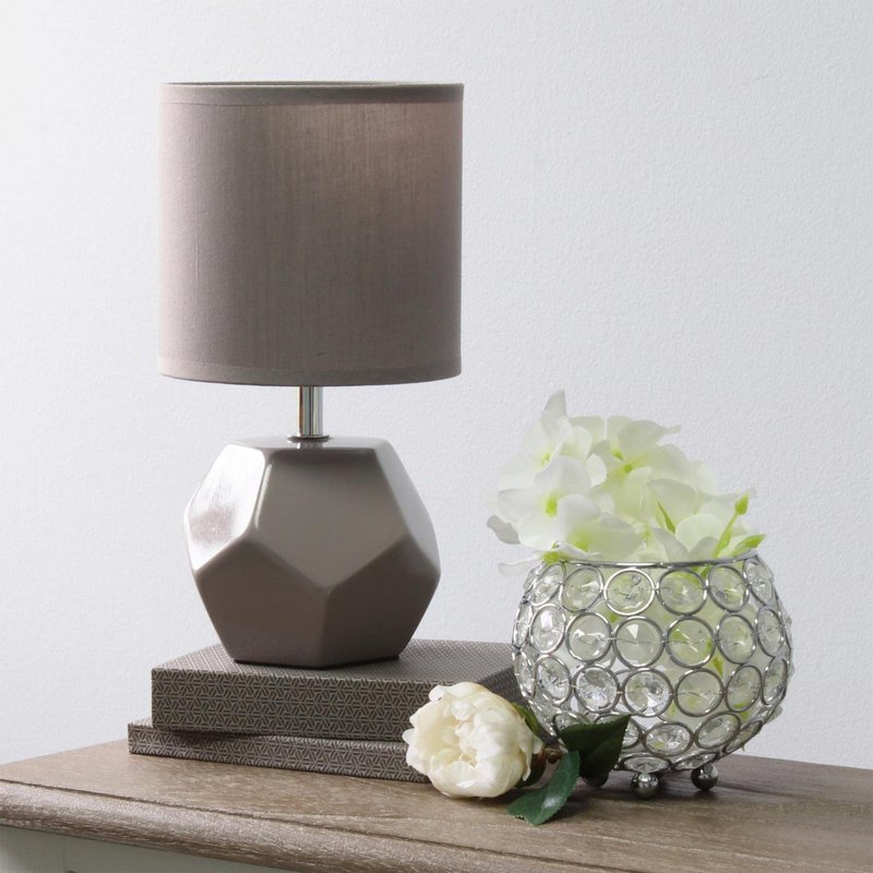 Simple Designs LT2065-GRY Round Prism Mini Table Lamp with Matching Fabric Shade, Gray