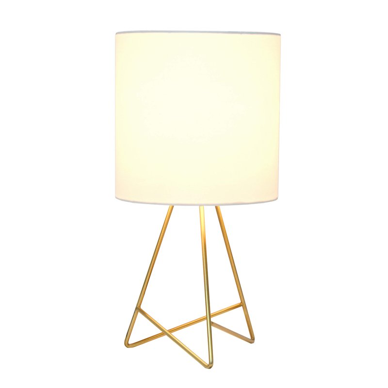 Simple Designs LT2066-GDW 13.5" Down to the Wire Metal Table Lamp with Fabric Shade, Gold with White Shade
