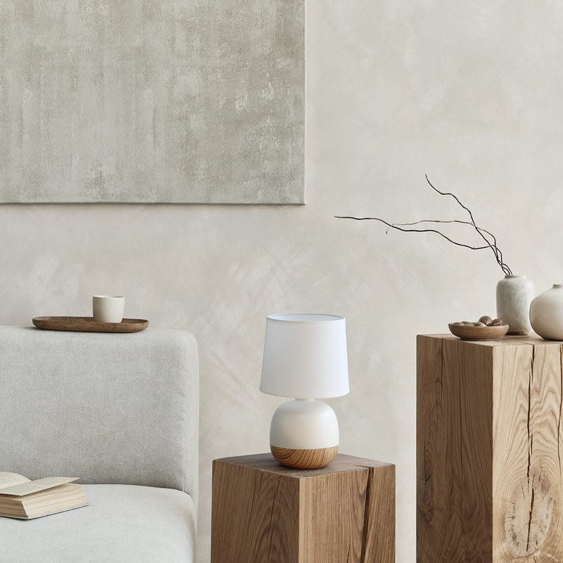 Simple Designs LT2078-LWW Petite Mid Century Table Lamp, Light Wood and White