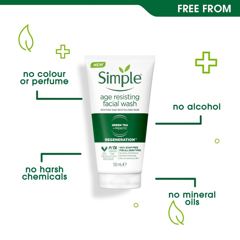 When your skin's happy and looking youthful, you feel healthier and happier too! Simple's Regeneration Age Resisting Facial Wash contains a special blend of ingredients to help remove all impurities and leave your complexion visibly clearer. Perfect for even sensitive skin. How To Get The Best Results In your hands, work a small amount into a lather. Massage onto wet skin, rinse with water. If wash gets into your eyes rinse thoroughly with water.