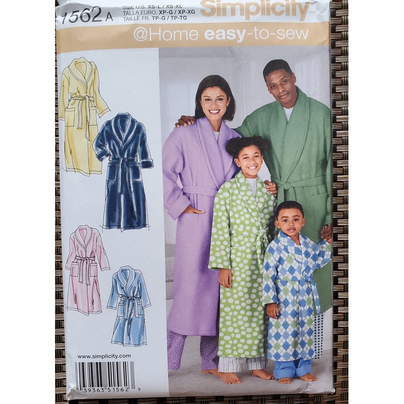 Simplicity 1562 Easy to Sew Child's, Teen's, and Adult's Robe Sewing Patterns, Youth Sizes XS-L and Adult Sizes XS-XL