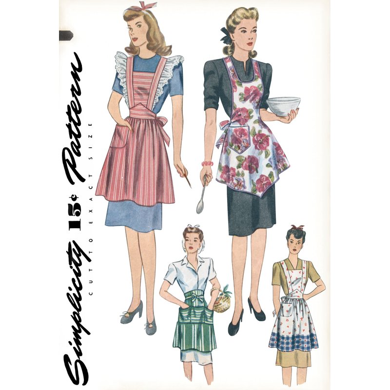 Simplicity Vintage Simplicity 1221 1940's Vintage Fashion Women's Apron Sewing Pattern Kit, Sizes S-L