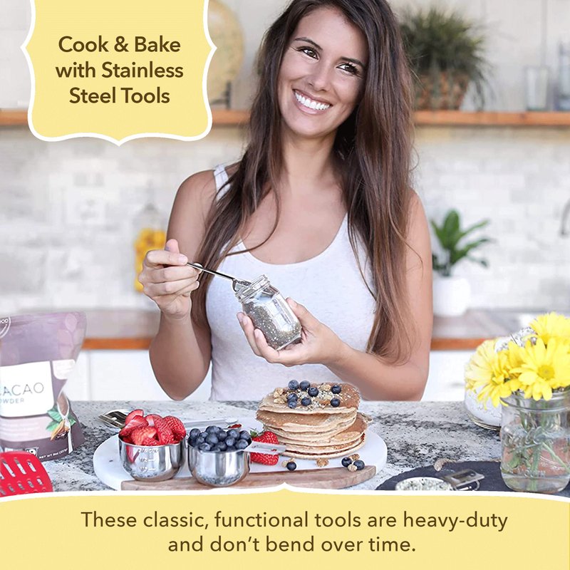 - Dishwasher safe: Designed with high-quality stainless steel these dishwasher safe measuring cups and spoons are built to last a lifetime.