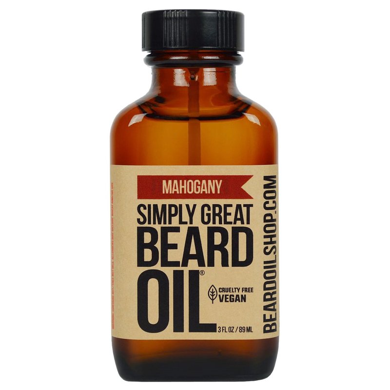 Simply Great Beard Oil - MAHOGANY Scented Beard Oil - Beard Conditioner 3 Oz Easy Applicator - Natural - Vegan and Cruelty Free Care for Beards - Gifts for Men with Beards