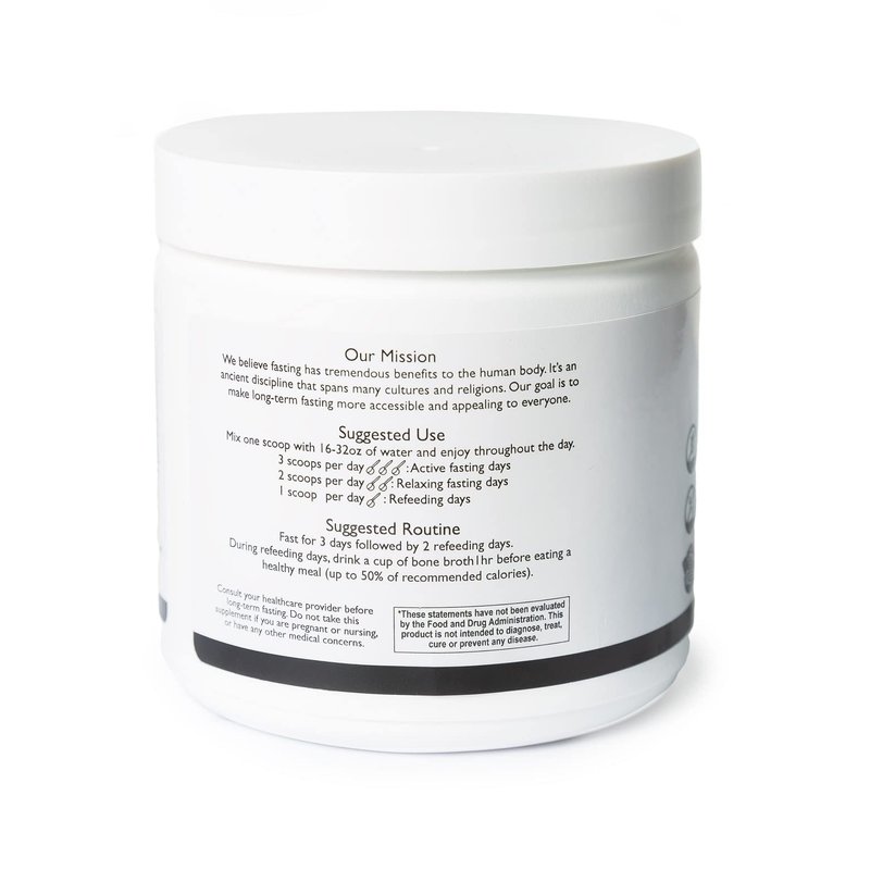 WATERFAST is formulated to help any individual complete a long-term fast by replenishing the body with much needed electrolytes without sacrificing great taste and increasing the palatability of the product. Electrolytes in the right proportions and amounts allow you to remain active while minimizing negative side effects during fasting. Electrolytes that are included in the product are: Sodium (from pink Himalayan sea salt), Potassium (from Potassium Chloride), Magnesium (Magnesium Citrate), Calcium (Calcium Citrate(95%+), Calcium Silicate (<5%)). All ingredients are 100% Made in the USA. Please give the container a good shake before using the product so that the product is well distributed. Start slow and ease into fasting. Starting with a 1 day fast is ideal for beginners. We recommend mixing the powder with 32oz of water as this will allow for more water intake throughout the day. Keep hydrated! The product is formulated to be mixed with 24oz of water. 16oz will result in a stronger flavor and 32oz will result in a weaker flavor. A full 3 day fast with 2 days of refeeding will yield the most optimal result. Fasting isn't for everyone, especially those with sensitivities to salt.