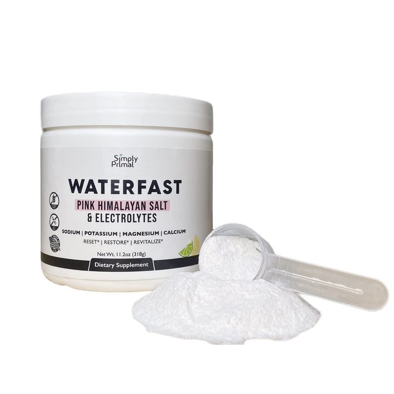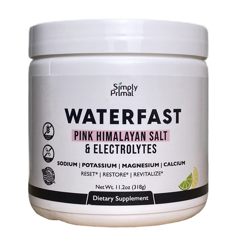 Simply Primal WATERFAST Keto Electrolyte Powder for Fasting and Hydration - Lemon Lime Flavor | Pink Himalayan Salt (Sodium), Potassium, Magnesium, Calcium | Sugar Free, Gluten Free, Soy Free