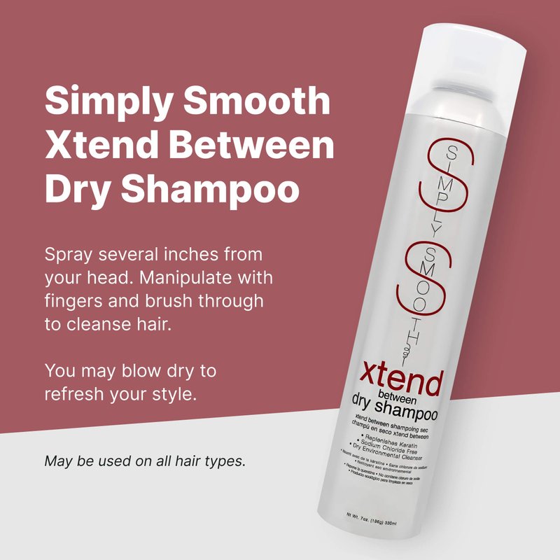 Simply Smooth xtend between dry shampoo rids hair of environmental impurities while deodorizing and cleansing sebum from hair. May be used to refresh hair between water based shampoos. Rids hair of environmental impurities and oil (sebum). Adds body and volume. Leaves hair feeling clean - no water required. Great for-active lifestyles. Spray on shampoo, fluff and brush. Sodium chloride-free. Refreshes hair during curing time of a Simply Smooth keratin treatment.