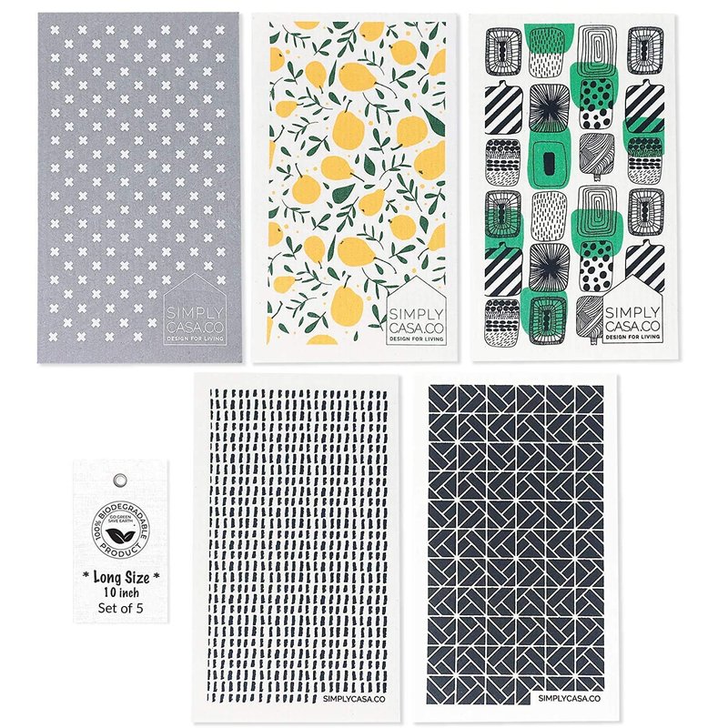 SIMPLYCASA Long Swedish Dishcloth Sponge Pack of 5, Eco-Friendly 100% Biodegradable Cellulose Sponge Cleaning Cloths, Kitchen Cloths