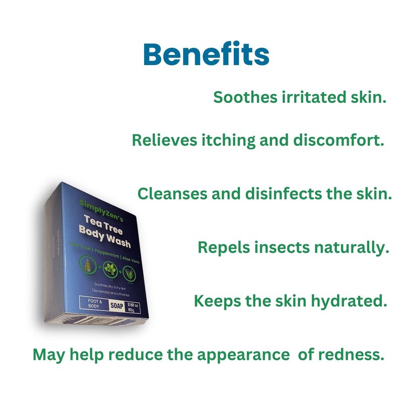 - Skin Care Benefits: Tea tree oil helps to by giving soothing support for those with acne, eczema, and psoriasis.