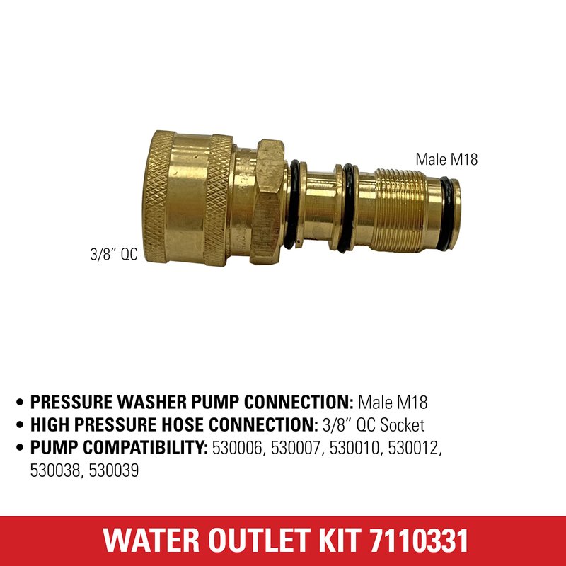 - COMPATIBILITY: Check the pump model number before ordering to make sure you get the right part; This water outlet replacement fitting is compatible with these models of AAA brand pressure washer pumps: 530006, 530007, 530010, 530012, 5300038 and 530039.