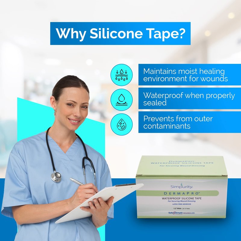- WATER RESISTANT SILICONE TAPE - Our medical-grade silicone tape is waterproof and can withstand moisture while protecting your wound—making it the perfect option for any activity. It's made of strong, tear-proof silicone that stays sticky for a long time.