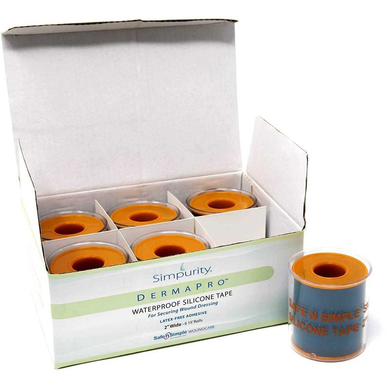Simpurity DermaPro Silicone Tape Waterproof -2"x15" Individual Pack of 6- Latex Free Tape Medical for Securing Wound Dressing - Silicone Wound Healing Tape for Sensitive Skin Waterproof