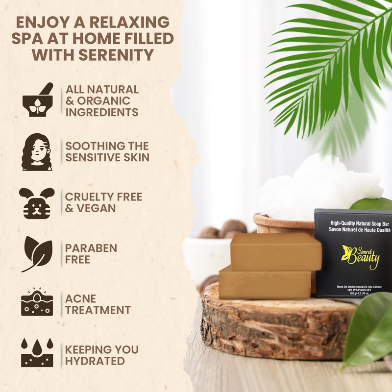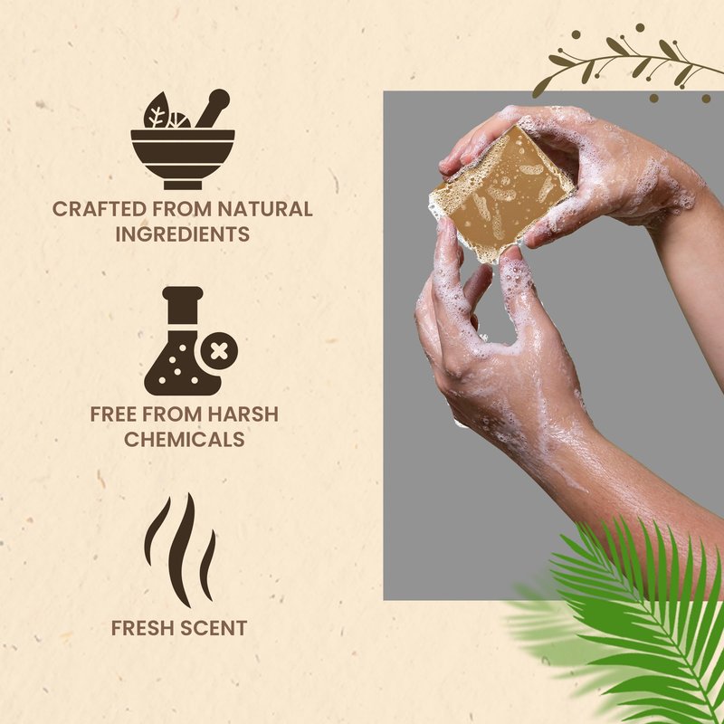 - 𝐓𝐔𝐑𝐌𝐄𝐑𝐈𝐂-𝐈𝐍𝐅𝐔𝐒𝐄𝐃 𝐍𝐀𝐓𝐔𝐑𝐀𝐋 𝐒𝐎𝐀𝐏: Enriched with turmeric powder, this natural soap deeply purifies the skin, enhancing its radiance. The bar effectively brightens the skin, diminishing dark spots, hyperpigmentation, and promoting an even skin tone. Regular use unveils a luminous, healthy complexion.