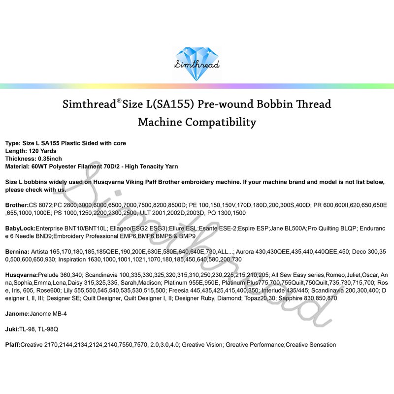 - ✔ SIMTHREAD brand is always your first choice for prewound bobbins thread embroidery and sewing, 100% QUALITY GUARANTEE !