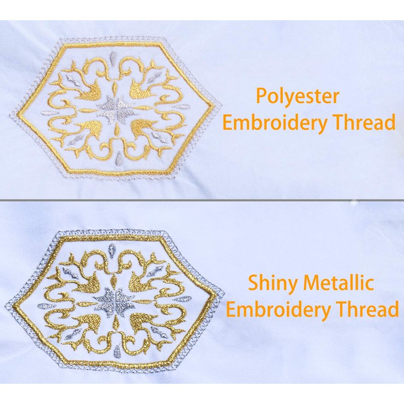 - ✔ 6 SHINY GOLD - The most shine classic Metallic colors, just bright like a diamond. Bring these glittery colors to decorate your sewing and embroidery fabric cloths. Metallic Embroidery Machine Thread is widely used for the emblem and uniform, simply make them Elegant and Royal!