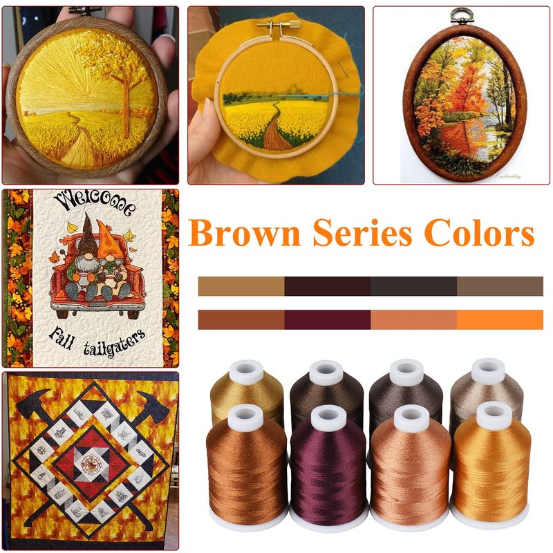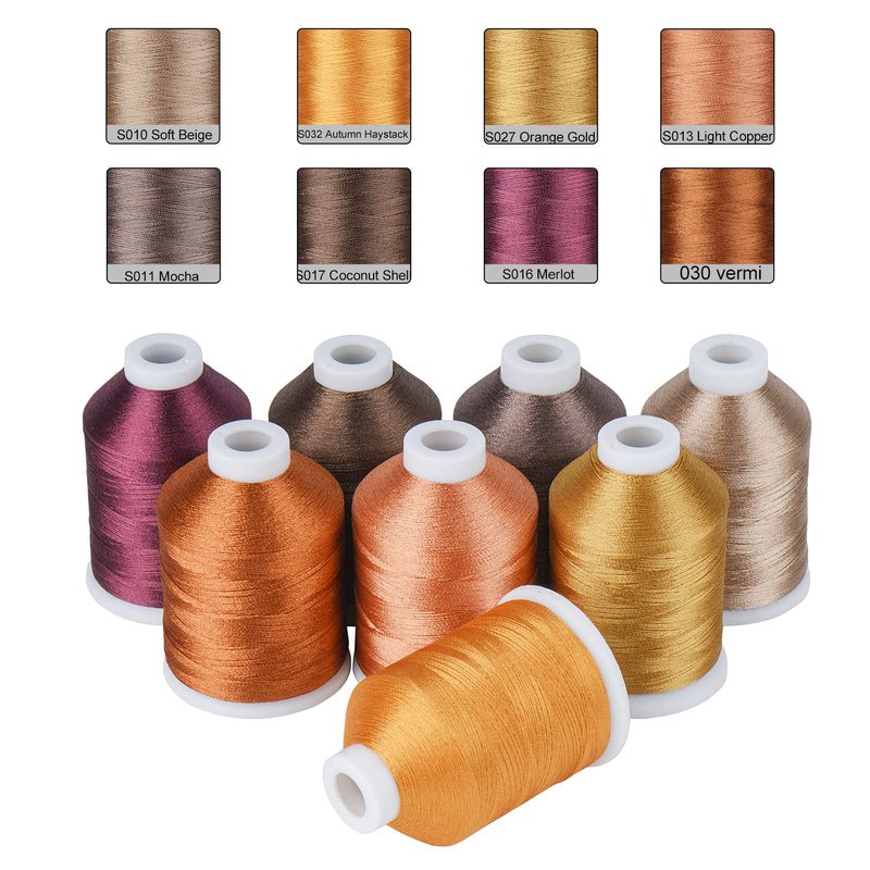 Simthread Brown Embroidery Thread 8 Madeira Colors 550Yards, 40wt 100% Polyester for Brother, Babylock, Janome, Singer, Pfaff, Husqvarna, Bernina Machine
