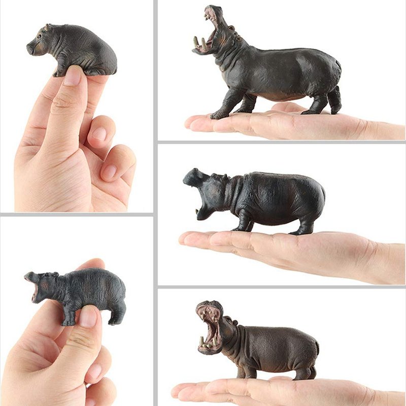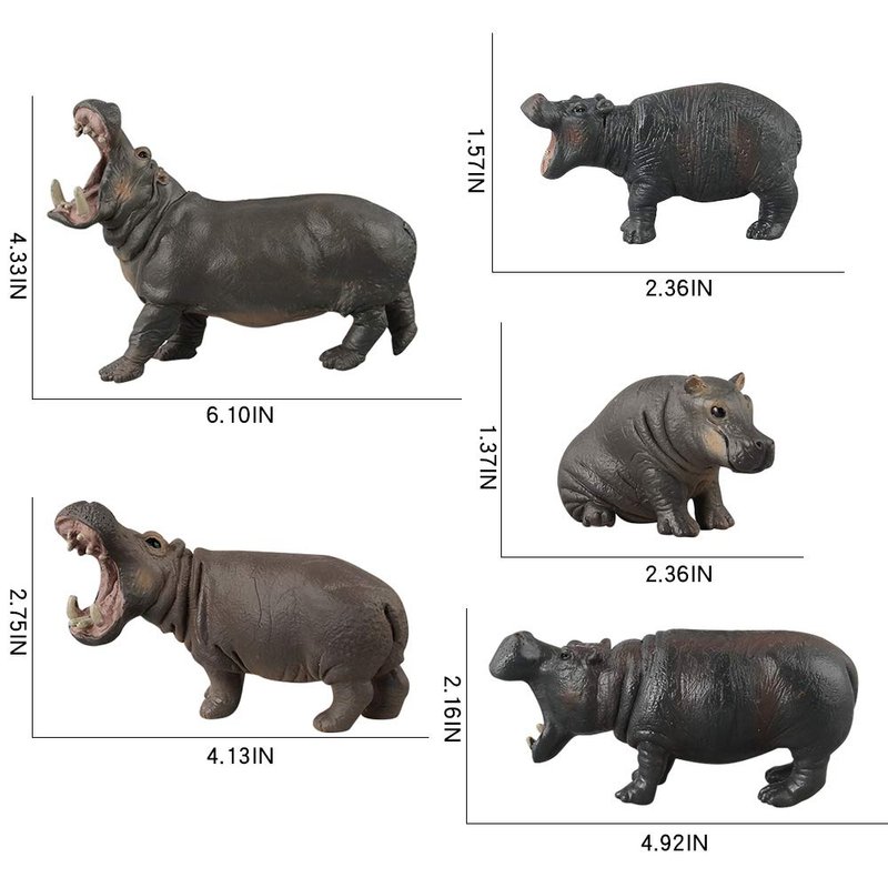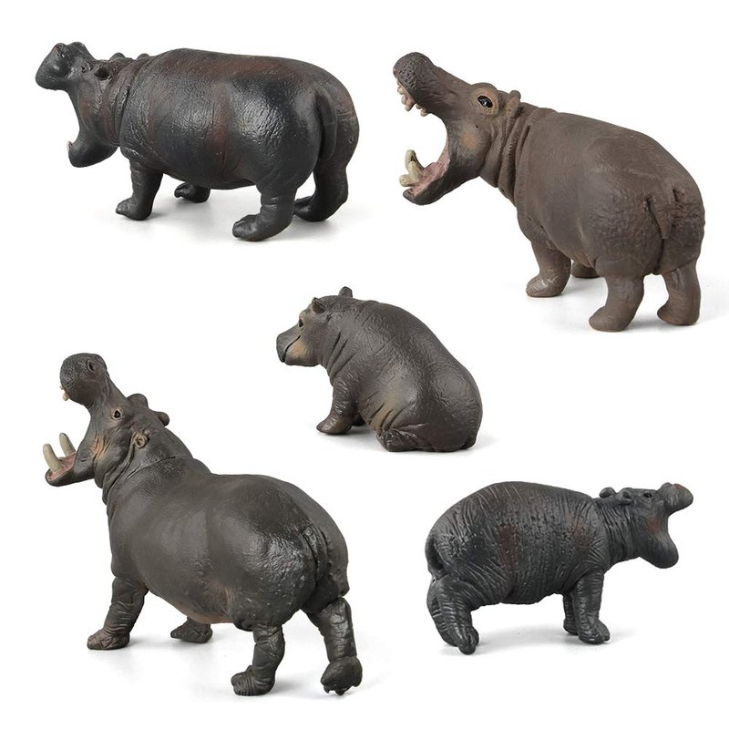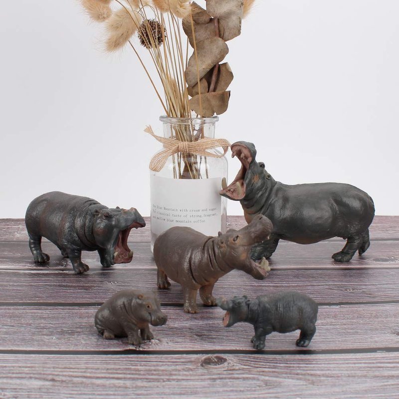 Simulation Wild Life Animal Figures Model Hippo Family Playset Desktop Decoration Education Cognitive Toy Collection Party Favors Toys for Boys Girls Kid(5 pcs)