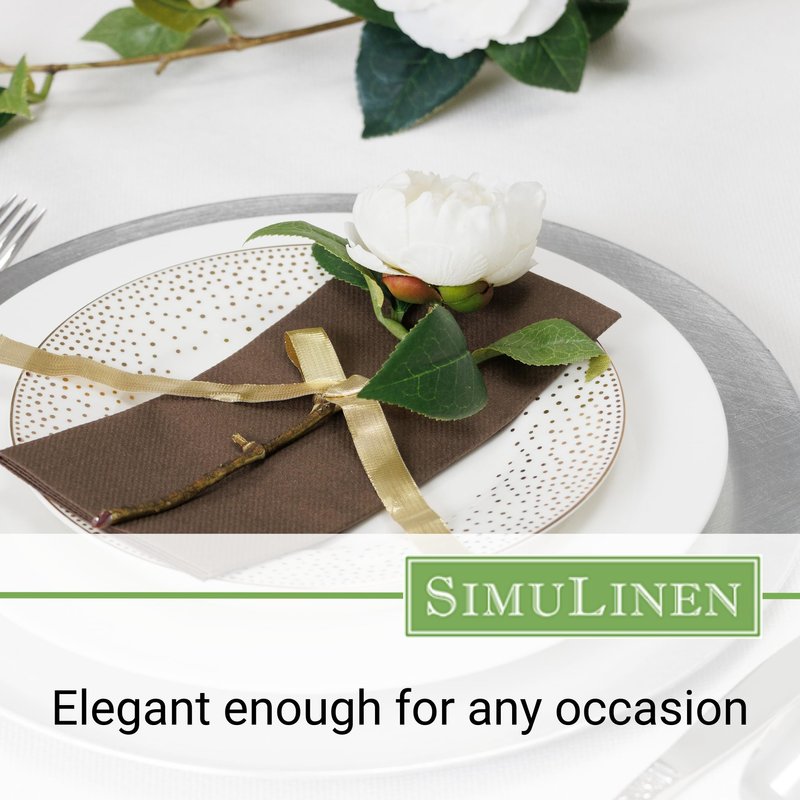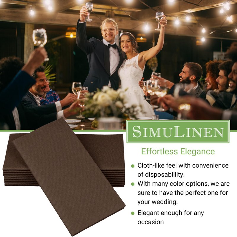 SimuLinen is proud to offer our Colored Paper Napkins Dinner. These linen feel disposable dinner napkins are cloth like and have a linen feel. They are decorative Brown napkins and are perfect for Christmas napkins and Hanukkah napkins and go well with holiday decorations. Our premium colored paper dinner napkins are dinner size and great for wedding receptions and bridal shower napkins as they are very nice party napkins.