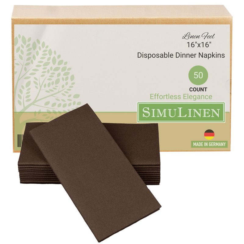 SimuLinen Brown Dinner Napkins Paper Disposable & Decorative –Dinner Napkins with Linen-feel, Cloth-Like & KOSHER for Passover, Easter, Weddings, Shower Napkins – Size: 16”x16” – Box of 50