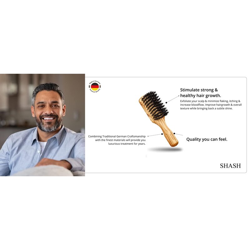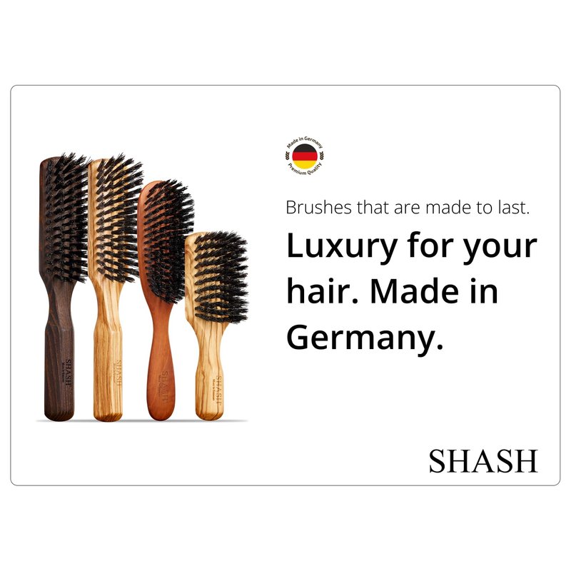 - MADE IN GERMANY: Crafted with 100% pure boar hair, our bristle brush delivers quality you can trust! The beech wood handle is ecologically sourced and finished with a olive wood varnish, providing you with world-class workmanship you’ll use for years.