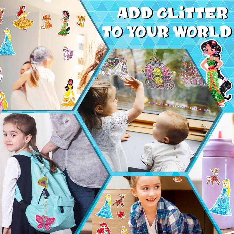 sinceroduct Diamond Art Kits for Kids with 6 Princess and Animals Stickers, 3 Gem Art Keychains and Suncatchers, Make Your Own Arts & Crafts, Christmas and Birthday Gifts for Girls Aged 4-8+