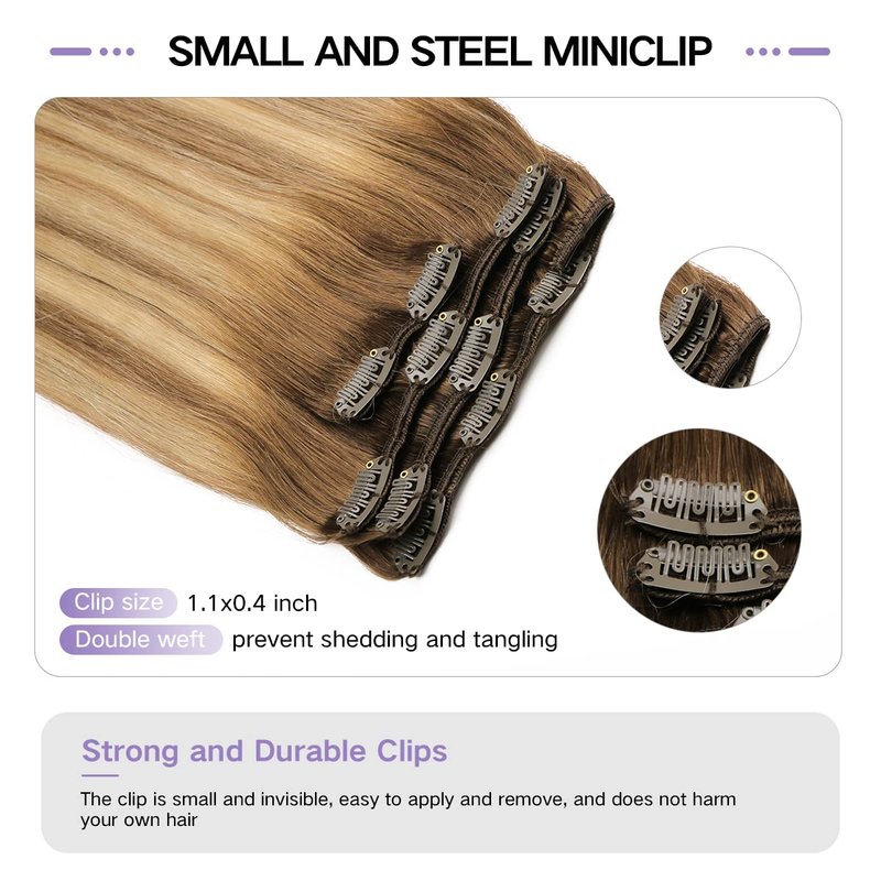 - Human Hair Clip in Extensions-- Our clip in hair extensions are made from remy human hair extensions Can be straightened and curled as your desire to meet different occasion needs You can style the hair at home as your like, but we suggest using lower temperature which can reduce the damage to the hair