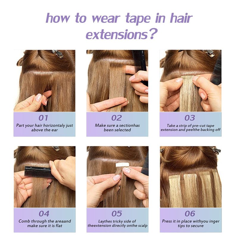 - 4.This tape in hair extensions comes in a variety of colors for you to choose from. Different monitors will display differently, if you are not sure which color you fit. Please tell us your confusion, we will do our best to help solve your problem