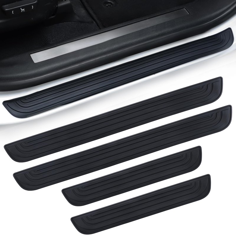 SINGARO Car Door Threshold Protection, 4PCS Door Edge Step Dust Shield Cover, Door Width 23.6x2.36inch Car/SUV Universal Rubber Scratch Resistant Exterior Accessories (Black)