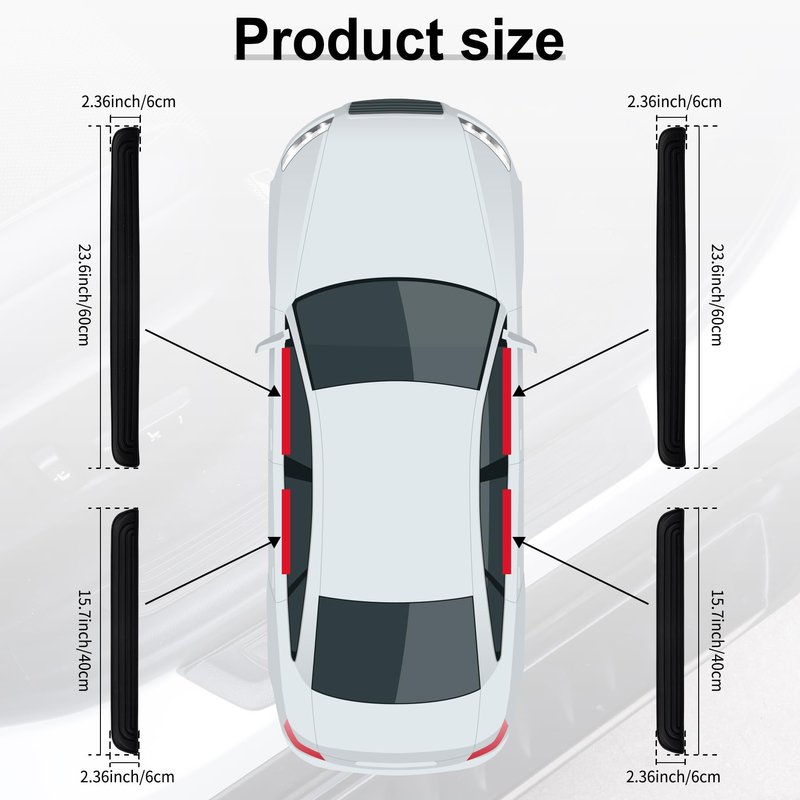- Product size: The package includes 2 front door devices of 23.6x2.36inch and 2 rear door devices of 15.7x2.36inch, suitable for most sedan/SUV models.