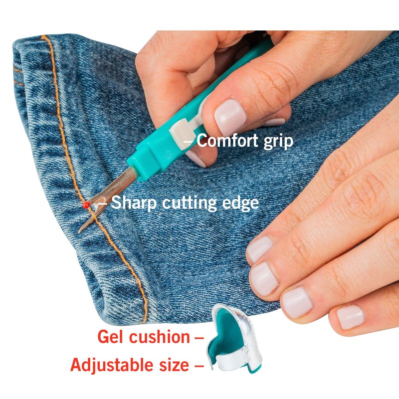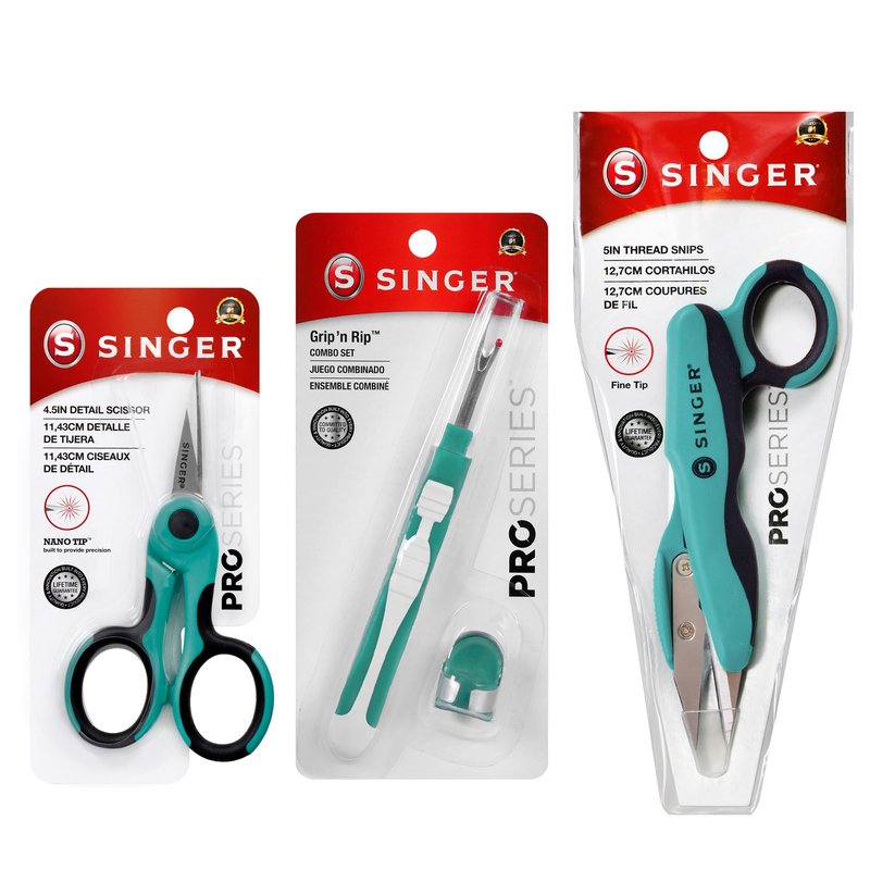 - Includes SINGER ProSeries Thread Snips, Comfort Grip Seam Ripper, ProSeries 4 1/2 inch Detail Scissor, and a bonus thimble