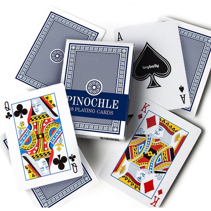 Back Details Enjoy this Pinochle deck made exclusively by Brybelly. This is a single, blue deck. Directions for the game are printed on extra cards for beginning players. Often compared to bridge and chess, Pinochle rewards the player who can leap on opportunities and is not afraid of risk.Enjoy the fun and excitement of Pinochle with this great Pinochle deck from Brybelly. Enjoy this Pinochle deck made exclusively by Brybelly. This is a single, blue deck. Directions for the game are printed on extra cards for beginning players. Often compared to bridge and chess, Pinochle rewards the player who can leap on opportunities and is not afraid of risk.Enjoy the fun and excitement of Pinochle with this great Pinochle deck from Brybelly.