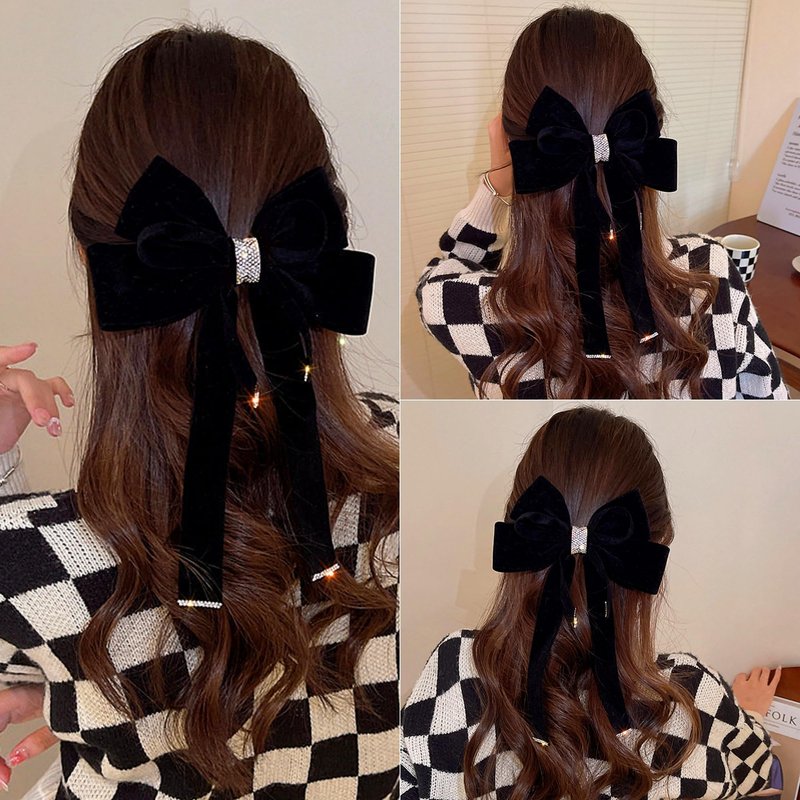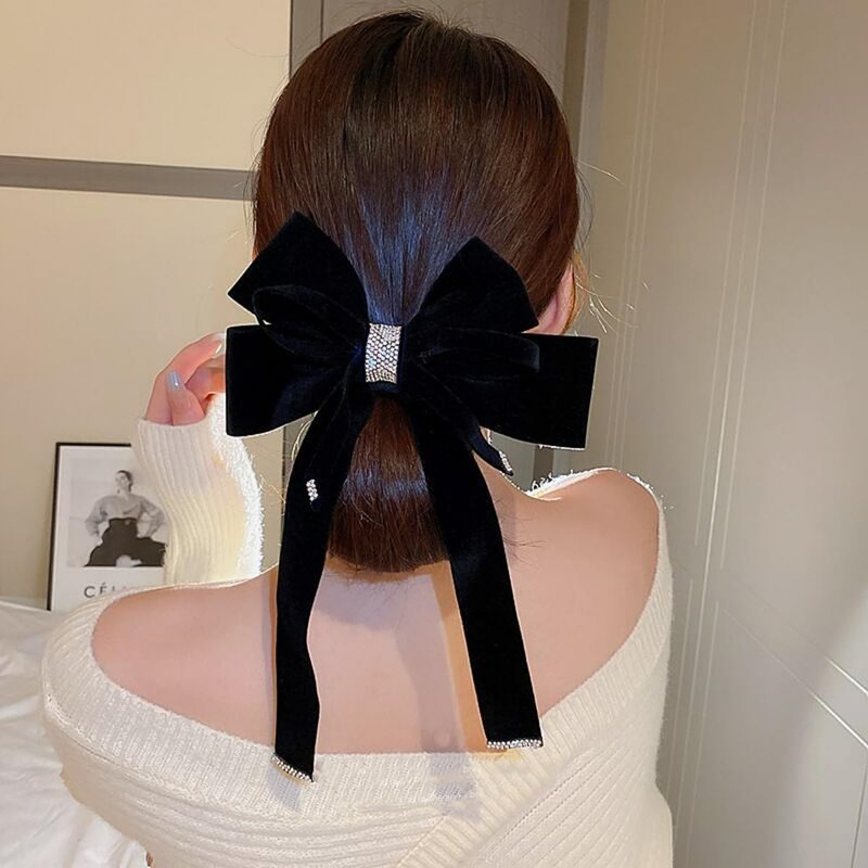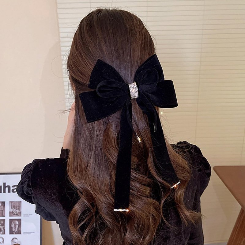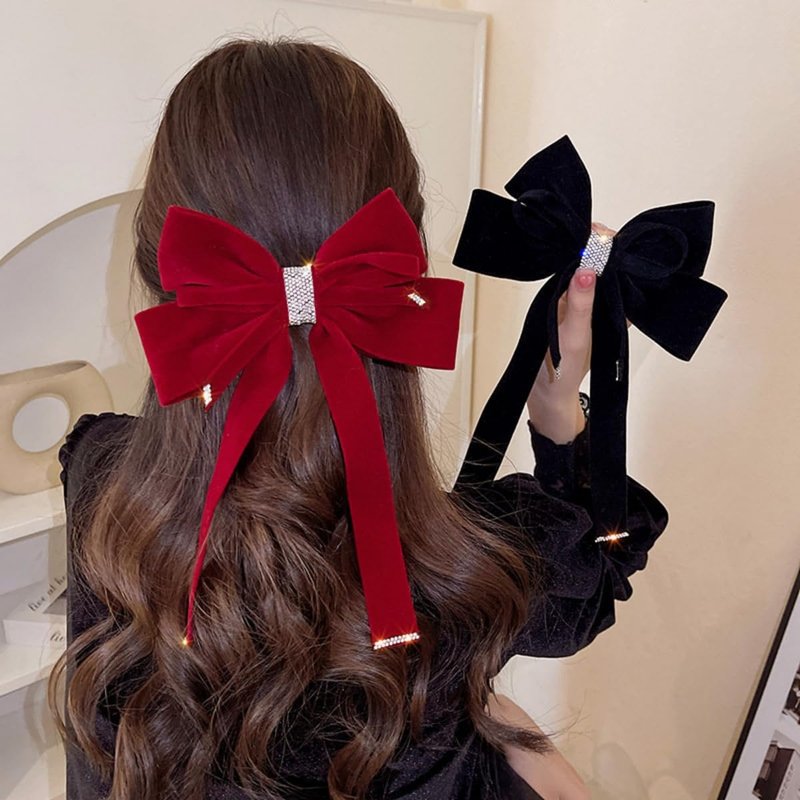SINIDE Velvet Hair Bow Tail Satin Bow Long Tail Headpieces Winter Hair Barrette Headwear Hair Accessories for Women and Girls Gifts, Elegant Hair Decor for Wedding Prom Dating