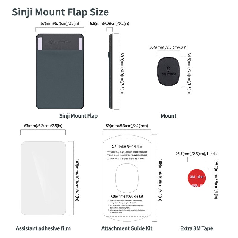 - PACKAGE & WARRANTY: This package includes Flap Sinji Mount x1, Mount x1, 3M Tape x1, Assistant Adhesive Film x1, Manual x1, Attachment Guide Kit x1. Sinjimoru offers 90 days warranty for all of our products. Please feel free to contact us :)