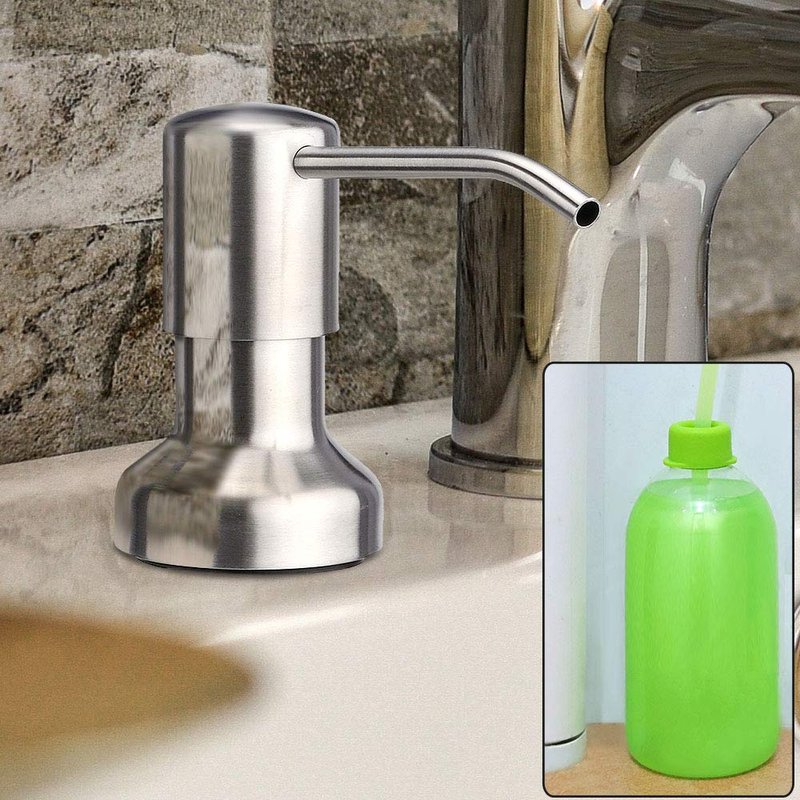 Sink Soap Dispenser for Kitchen Sink Extension Tube Kit, Stainless Steel, 39 Inches Tube Connects Directly to Soap Bottle, No More Refills, Dish Soap and Hand Soap Lotion, Countertop (Brushed Nickel)