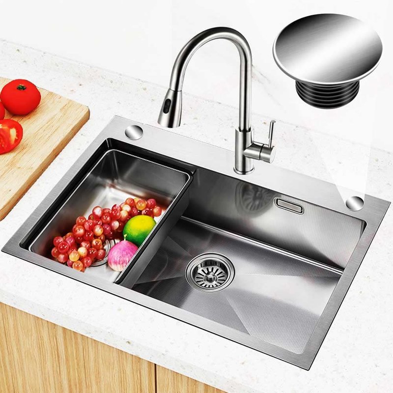 The large sink tap hole fit 1.10-1.60 inch in diameter and the thickness of the sink should be less than 0.4 inch,