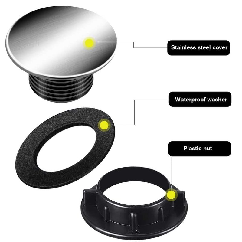 - ✔ SUITABLE FOR HOLES IN 1-1.6 INCH - The sink tap hole cover is the standard size for most households; Suitable for hole sizes between 1 to 1.5 inches, the thickness of the sink should be less than 0.25 inch (for the small one) and 0.4inch (for the large one) please check the size before purchase.