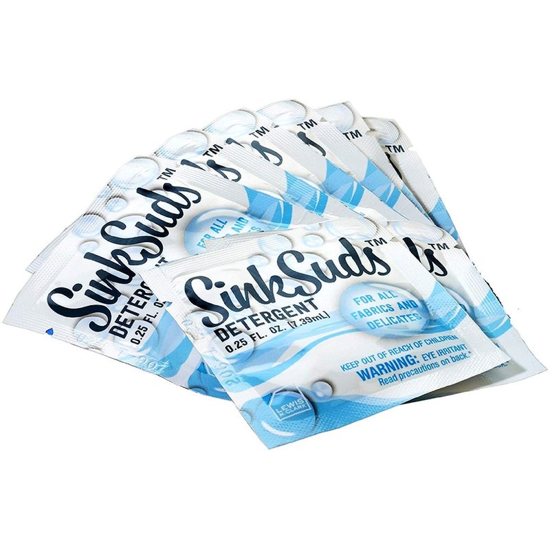 - SINKSUDS, IT’S SIMPLE: Simply mix the packet in water, wash your garments, and hang dry. Use 1 packet for 2-3 garments and 4 packets for a full load of laundry. Includes 8 unscented, 0.25 fluid ounce packets.