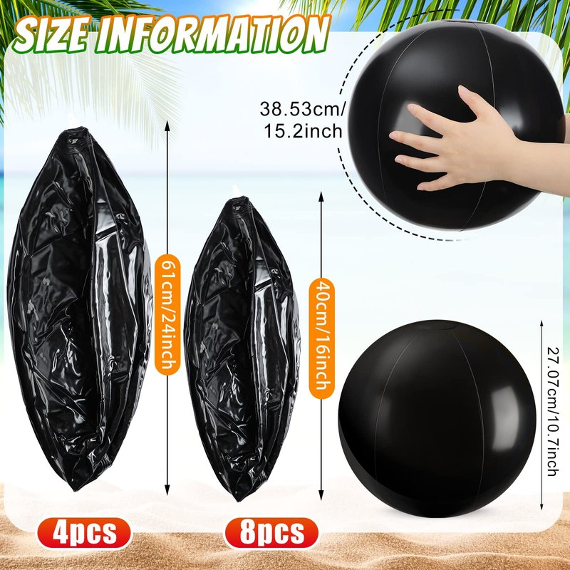 - Sufficient Quantity: you will receive 12 pieces of black beach balls in 2 sizes, including 8 pieces of 16 inch beach balls, and 4 pieces of 24 inch beach balls, ample quantity to meet your summer party and pool party needs; You can also share with others, enjoying the happy time together