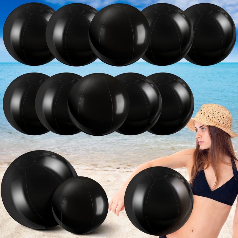 Features: Interesting party and beach supplies: There are 12 pieces of plastic balls, enough for you to use when you want to take a trip to the beach or have a summer themed party at home, these balls will be interesting supplies and bring more joy for your party. Funny presents: The pool balls for swimming pool are practical and creative gifts for family, partners, colleagues and neighbors, you can play games with them, enhancing the relationship between you. Specifications: Material: PVC plastic Color: black Size: approx. 16 inch, 24 inch Package includes: 12 x Solid beach ball Notes: Manual measurement, please allow slight errors on size. The color may exist a slight difference due to different screen displays. Please be careful when inflating, away from pointed objects.