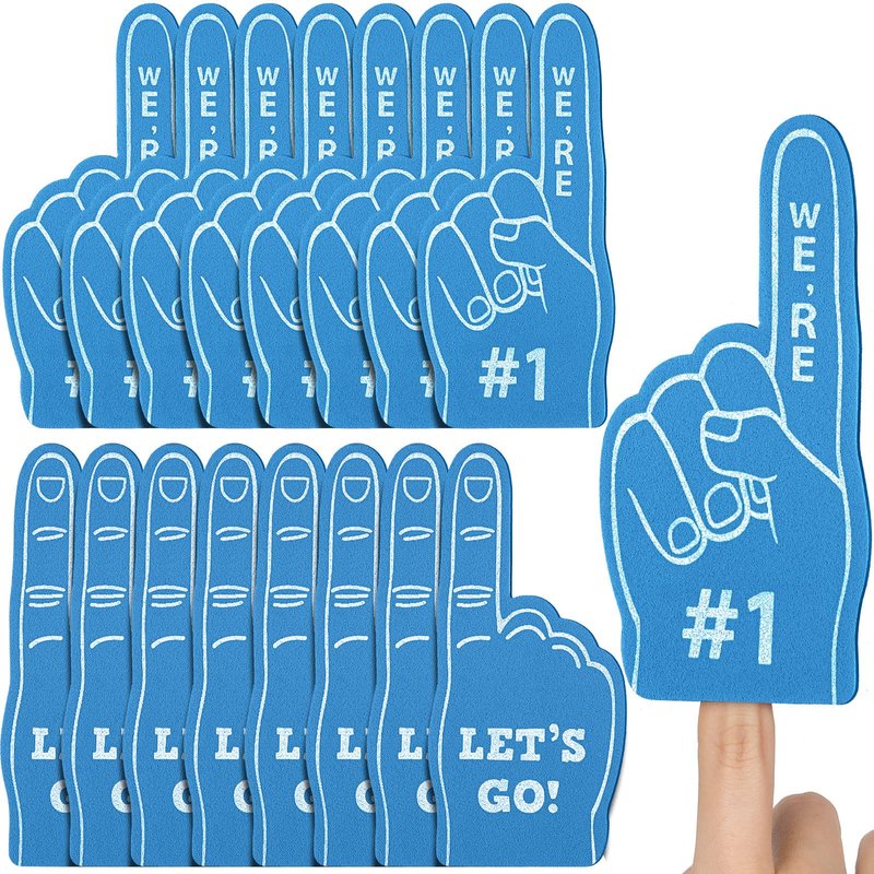Features: These mini number 1 foam hand is ideal choice for people to cheer for your favorite team, it is mini but bright, which can be fitted your finger well without slipping, which can give confidence to the players involved in the game. Sports foam fingers come with enough quantities that can meet the whole family, cheerleaders, and other groups to use, they are lightweight and can be applied as hand photo props. Specifications: Material: EVA foam Color: light blue Size: about 2.36 x 5.51 inches Package includes: 48 x Mini foam fingers Notes: Manual measurement, please allow slight errors on size. The color may exist a slight difference due to different screen displays.
