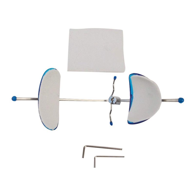 - Fully adjustable forehead and chin rests allow for adaptation to most patient’s anatomical structure. The angle of traction is then determined by adjusting the elastics engagement bar to deliver horizontal, upward or downward forces as necessary.
