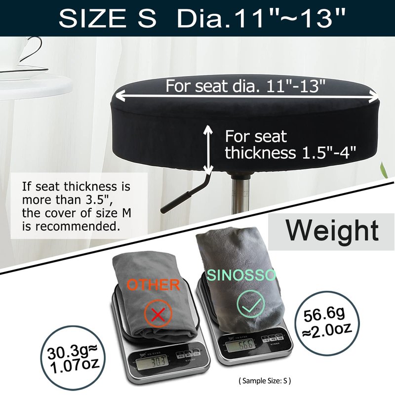 - 🔶SIZE S: The small size is fit for Diameter 11 "- 13"(28~33cm), Seat Thickness: 1.5-4"(3.8~10cm) Round Bar Stools, but It is not suitable for chairs of other shapes or with backrest connections. Please measure your stool size before purchase.