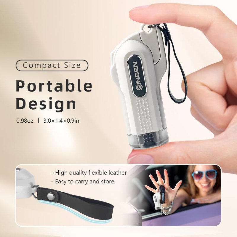 - LIGHTWEIGHT & PORTABLE - Lightweight (0.98oz, 3.0×1.4×0.9in) and portable key chain design, convenient to carry in your car/key/bag/pocket, easy to access and escape from emergency.