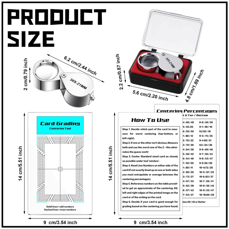 - What You Will Get: the package comes with 1 set of card grading tool kit and 1 piece of 30X magnifying tool, ideal for checking card corners and borders, whether you are attending a card show or sending cards to grade, this card grading magnification tool can provide convenience