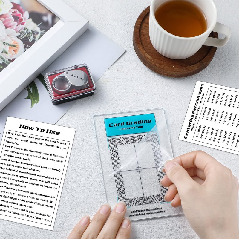 - Easy to Use: the card tool kit is included a centering guide, so just place it on the card you want to check to measure, then refer to the centering tool percentage guide, so you can check centering from left to right and top to bottom Condition