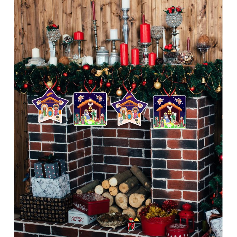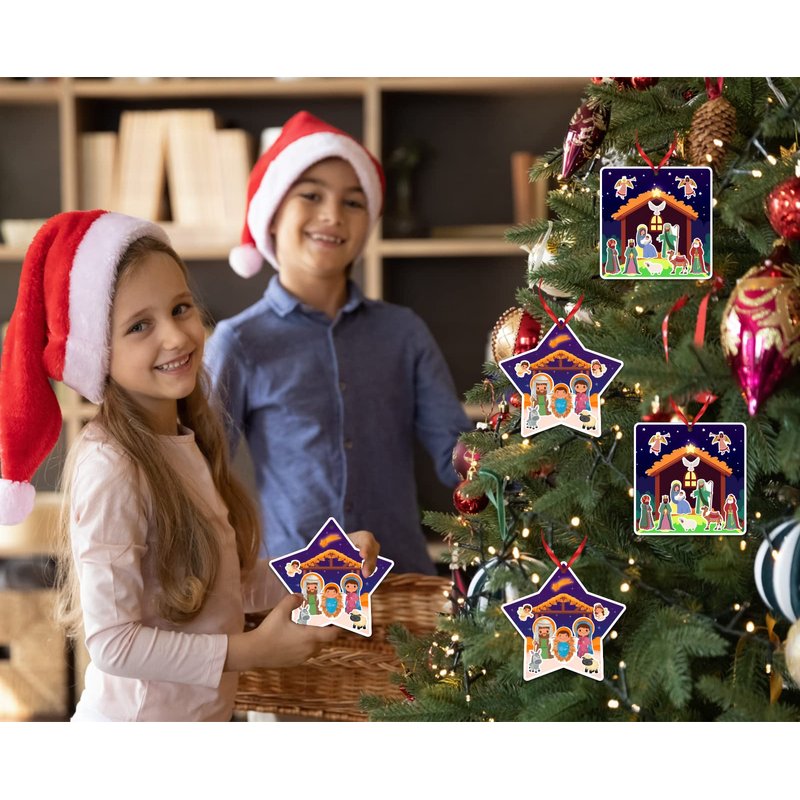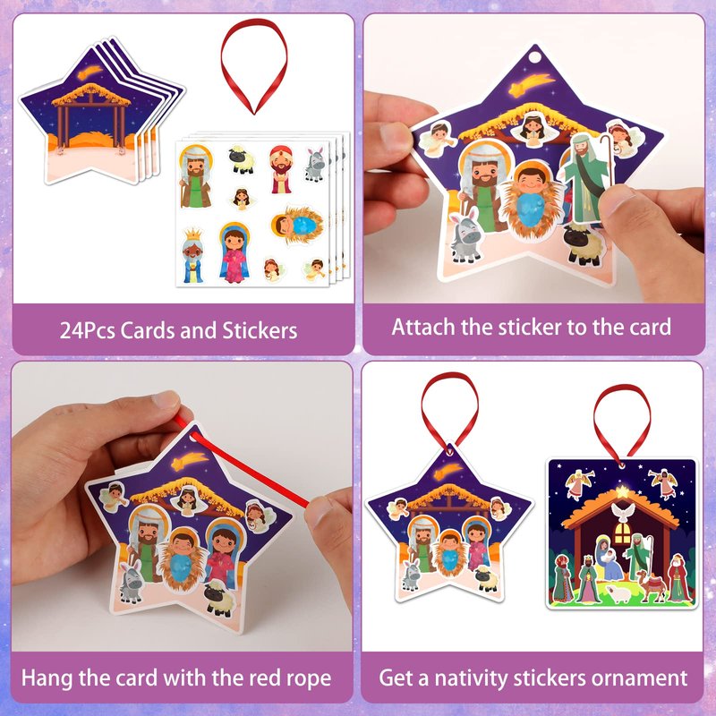 SIOCHOME Make a Nativity Scene Sticker Ornament Craft Kit Christmas 24 Religious DIY Nativity Christmas Stickers Christmas Ornaments Craft Set with Ropes for Religious Party Favor Game for Kids